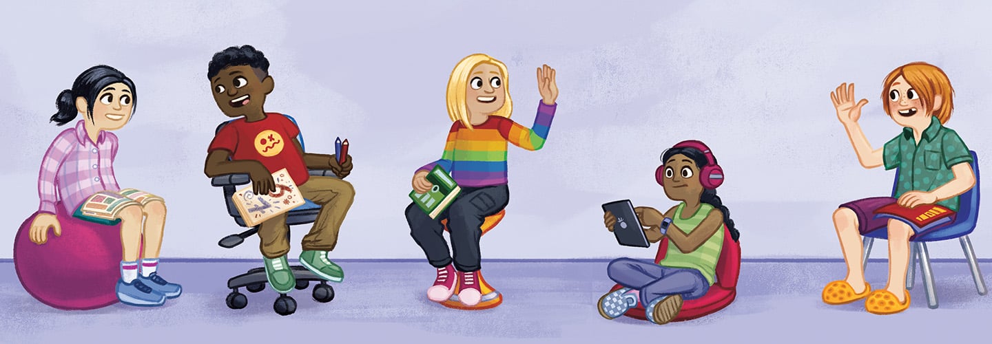 It’s the start of a new school day. Many kids head to their assigned seats. But at a growing number of schools, kids can sit anywhere they want. They can choose what they sit on too! That includes rolling desk chairs, stools, or even exercise balls.