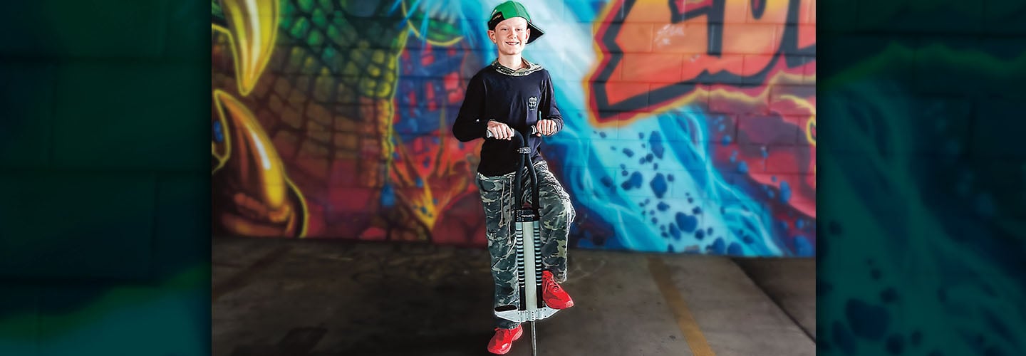 Lachlan soon found out. The 13-yearold from Australia loves jumping on his pogo stick. He learned about the record for most pogo jumps in a minute by a kid. It was 170. He was determined to beat it.